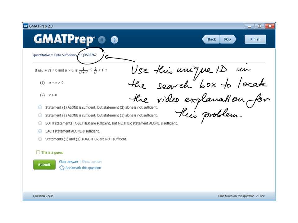 This page lists video explanations to the 230 quantitative problems in the GMATPrep Question Pack 1, which is an extension of the free official GMATPrep Software 2.0. Each section corresponds to how the problems are divided in the software under “Practice > More Options”. To locate the video explanation for a specific problem, please see the attached image